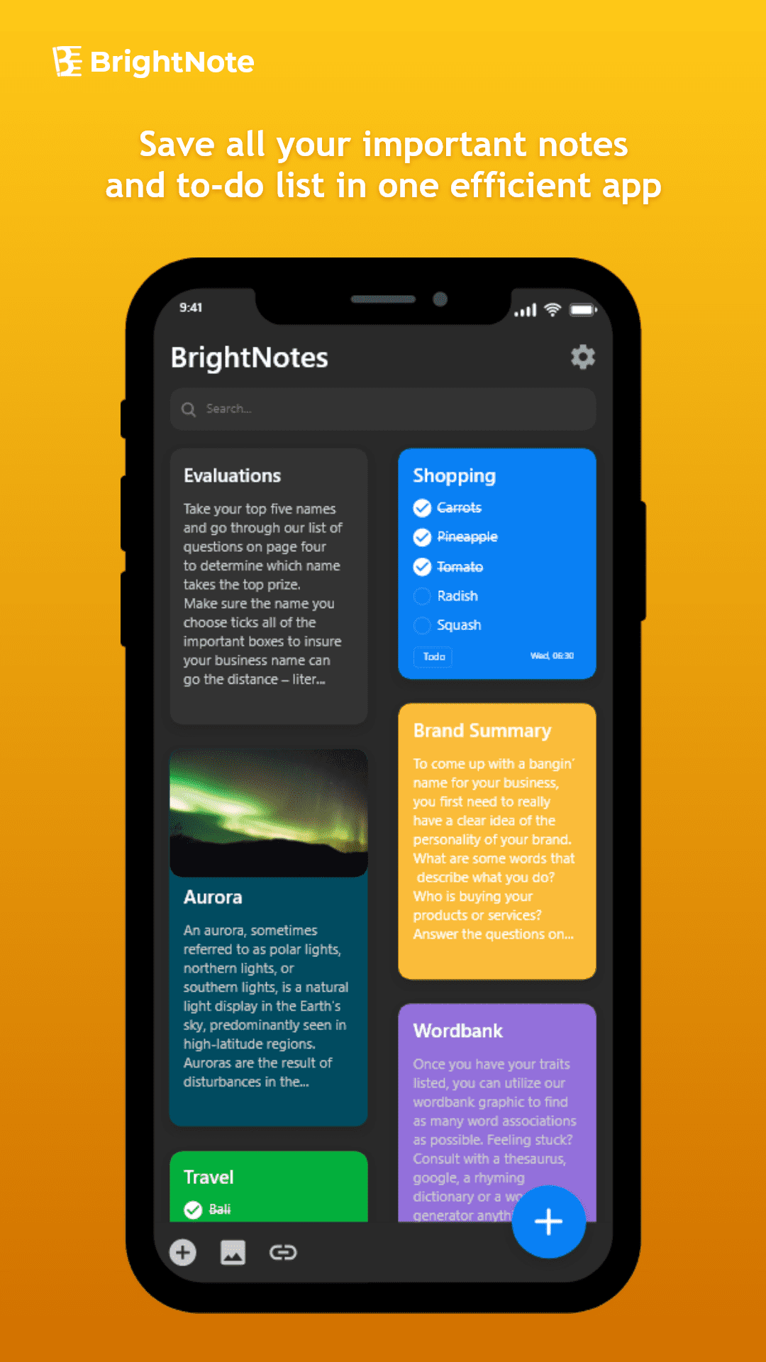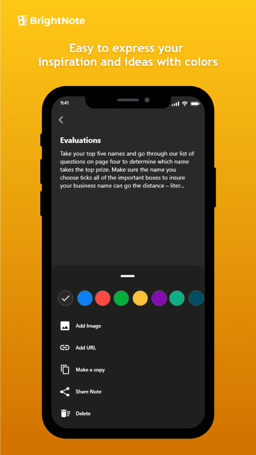BrightNote is a simple note-taking app with full-featured and easy to use notepad app. It makes easy and fast navigation between notes. It saves your inspirations, holiday plans, shopping lists or anything you want to organize or remember! Colors help you to organize and classify everything. You can work everywhere, stay productive and get reminders at the right time.