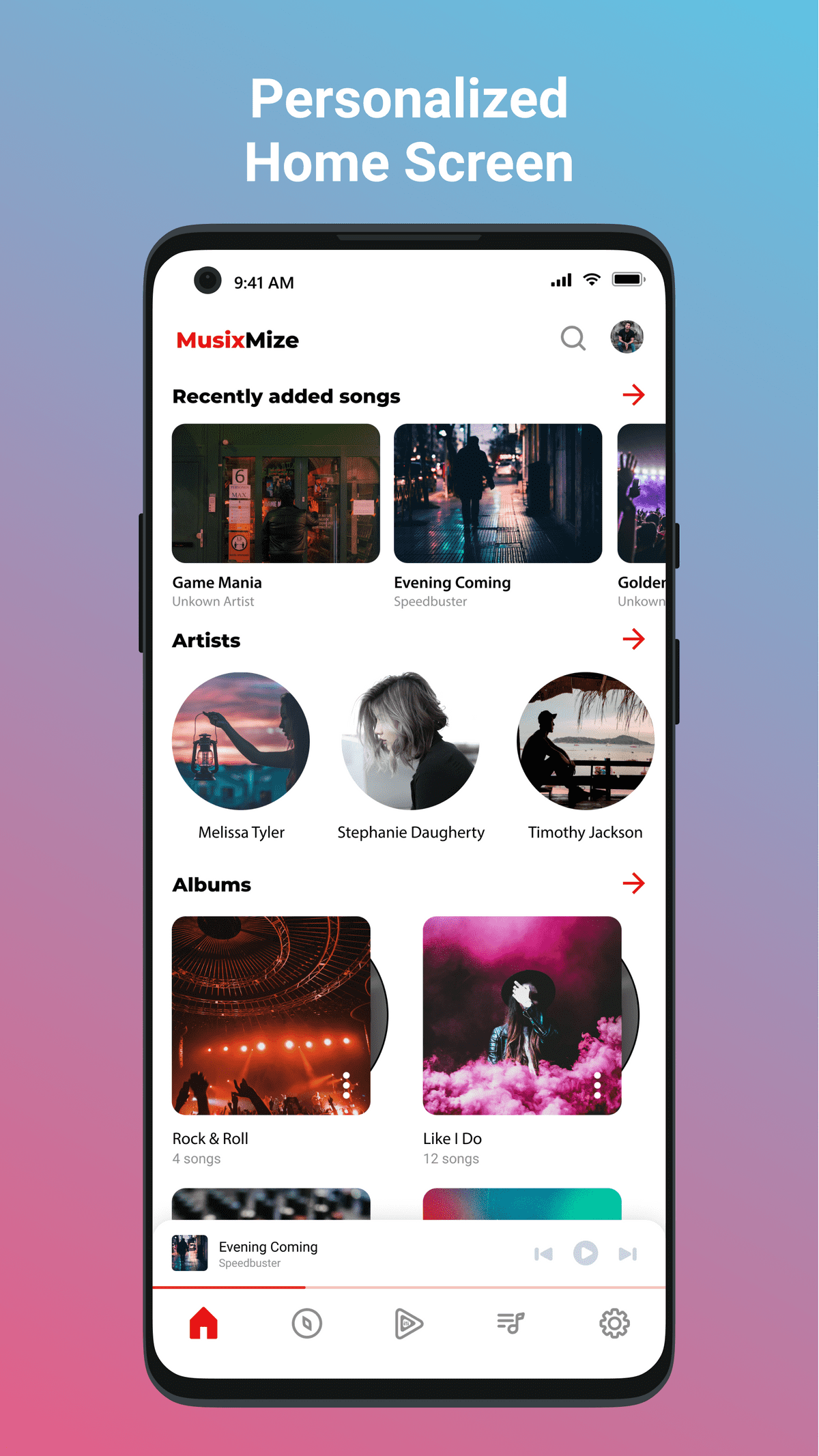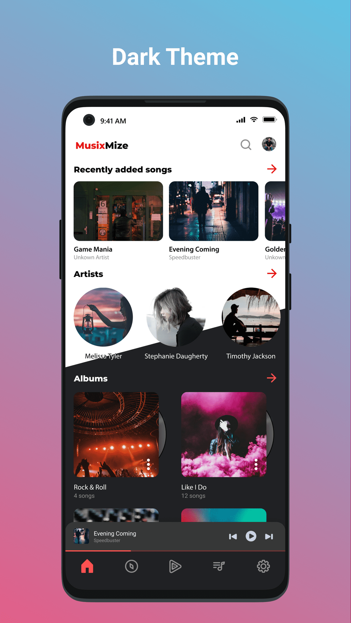 MusixMize is an offline music player that allow you to listen music from local device with modern